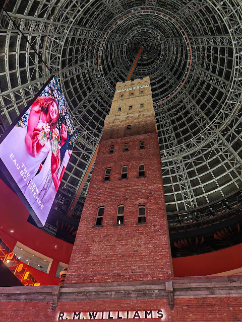 | Speaking of architecture, take a look at this building structure; it is pure art. I do not know what the building's name is, but it has a large bookshop called Dymocks Melbourne. |